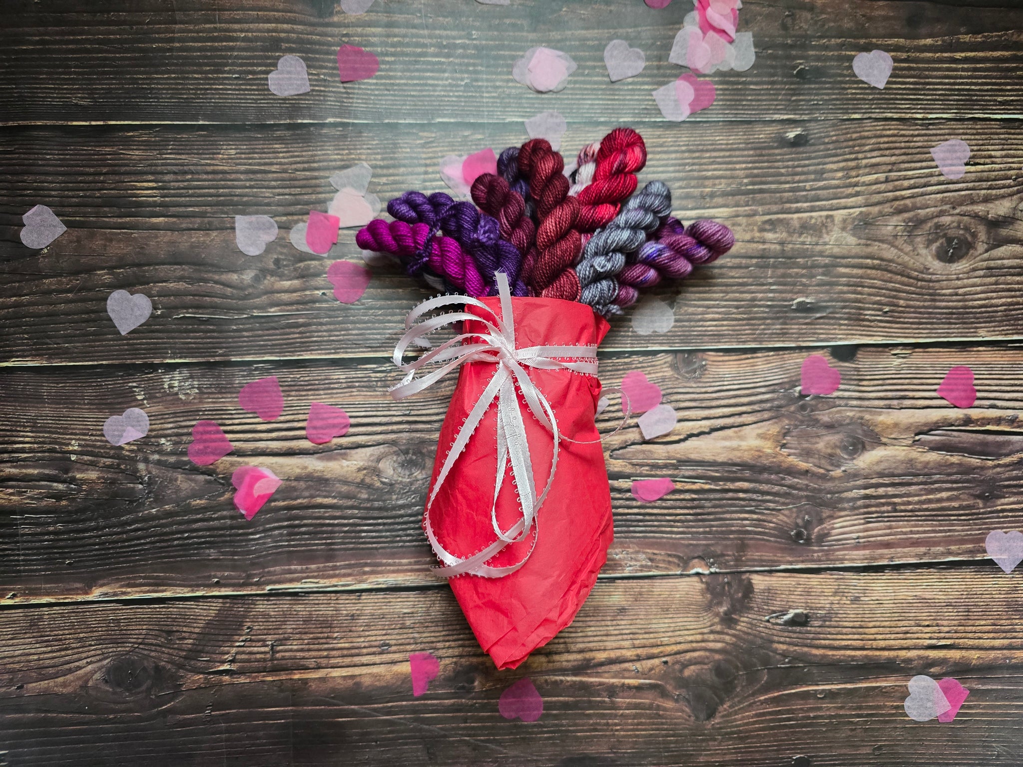Our Mini Skein Bouquets are bursting with color and creativity—12 perfectly coordinated 10g minis wrapped like flowers and ready to gift (or keep) and a coordinated SamsTinyTrinket bouquet to match!